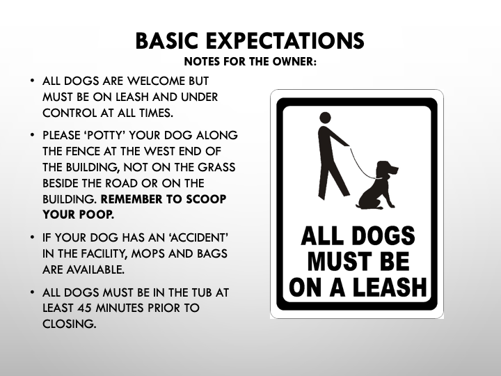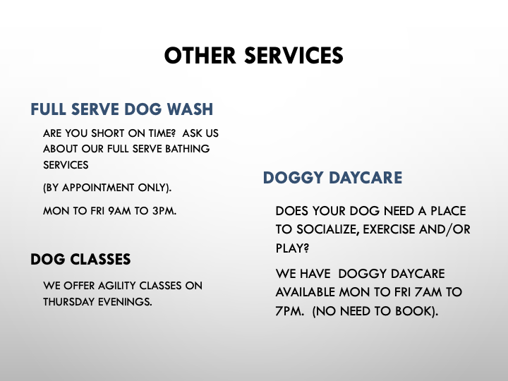 Our pricing is based on the size and coat of your dog, not on the length of time you use our facilities!